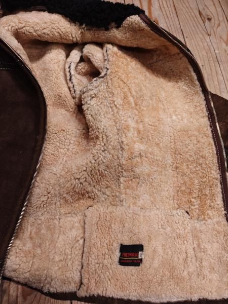 | フィンランド製FREDRIKSONのムートンレザージャケットです。 レザーの状態は、ステッチもしっかりとしています。 革スレは全体的にみられますが、大きなダメージはみられません。 ファスナー稼動も問題ありません。 | |
